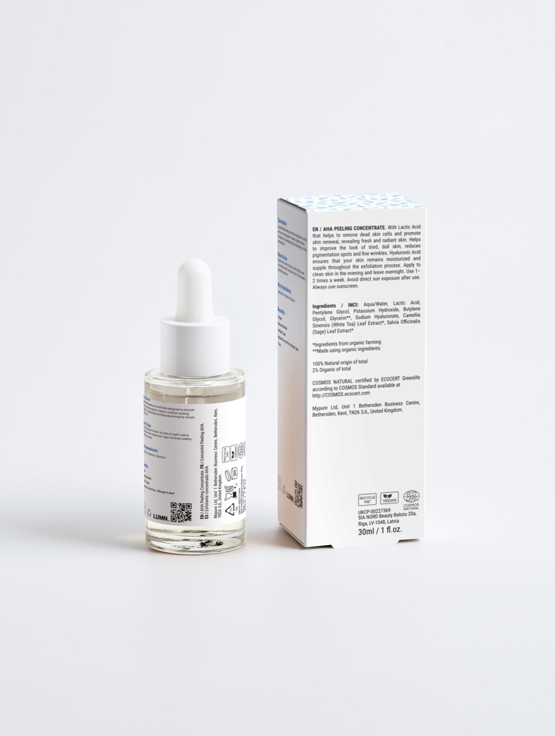Product description: With 10% Lactic Acid that helps to remove dead skin cells and promote skin renewal, revealing fresh and radiant skin. Helps to improve the look of tired, dull skin, reduces pigmentation spots and fine wrinkles. 1% Hyaluronic Acid ensures that your skin remains moisturized and supple throughout the exfoliation process. Apply to clean skin in the evening and leave overnight. Use 1–2 times a week. Avoid direct sun exposure after use. Always use sunscreen.