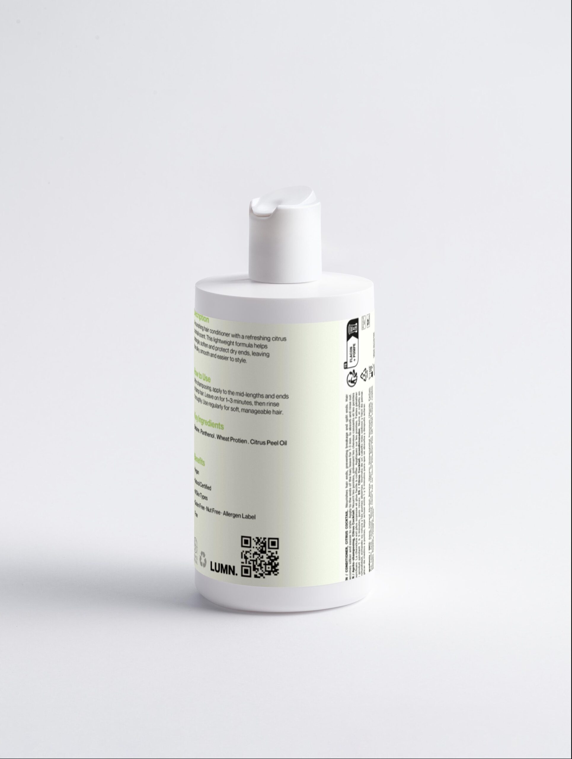 Ingredients / INCI: Aqua, Cetearyl Alcohol, Betaine, Glycerin, Distearoylethyl Dimonium Chloride, Parfum, Mica, Lactic Acid, Panthenol, Benzyl Alcohol, CI 77891, Sodium Benzoate, Hydrolyzed Wheat Protein, Potassium Sorbate, Limonene, Citrus Limon Peel Oil, Citrus Aurantium Peel Oil, Citral, Pinene, Linalool, Citronellol, Terpineol, Linalyl Acetate