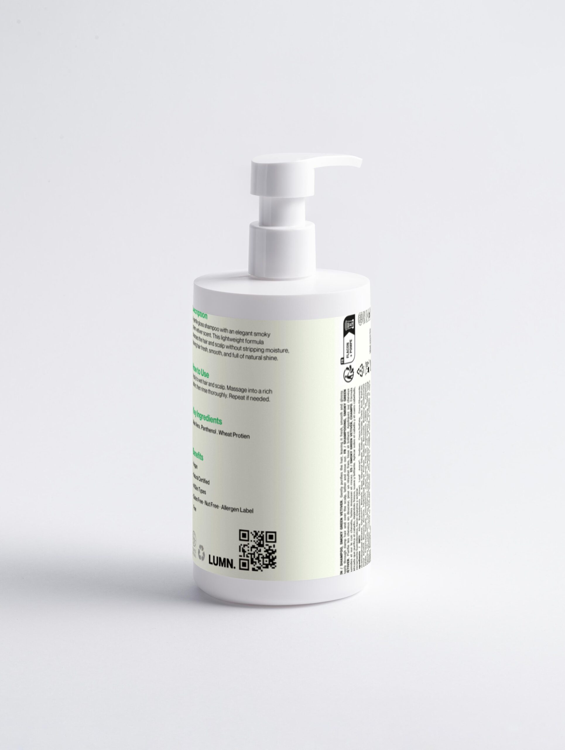 Ingredients / INCI: Aloe Barbadensis (Aloe) Leaf Juice➀, Sodium Coco-Sulfate, Coco-Glucoside, Cocamidopropyl Betaine, Glycerin, Betaine, Aqua, Glyceryl Oleate, Sodium Chloride, Citric Acid, Parfum, Benzyl Alcohol, Brassica Alcohol, Hydrolyzed Wheat Protein, Sodium Benzoate, Brassicyl Isoleucinate Esylate, Potassium Sorbate, Limonene, Citrus Limon Peel Oil, Pogostemon Cablin Oil, Juniperus Virginiana Oil, Linalool, Cedrus Atlantica Oil/Extract